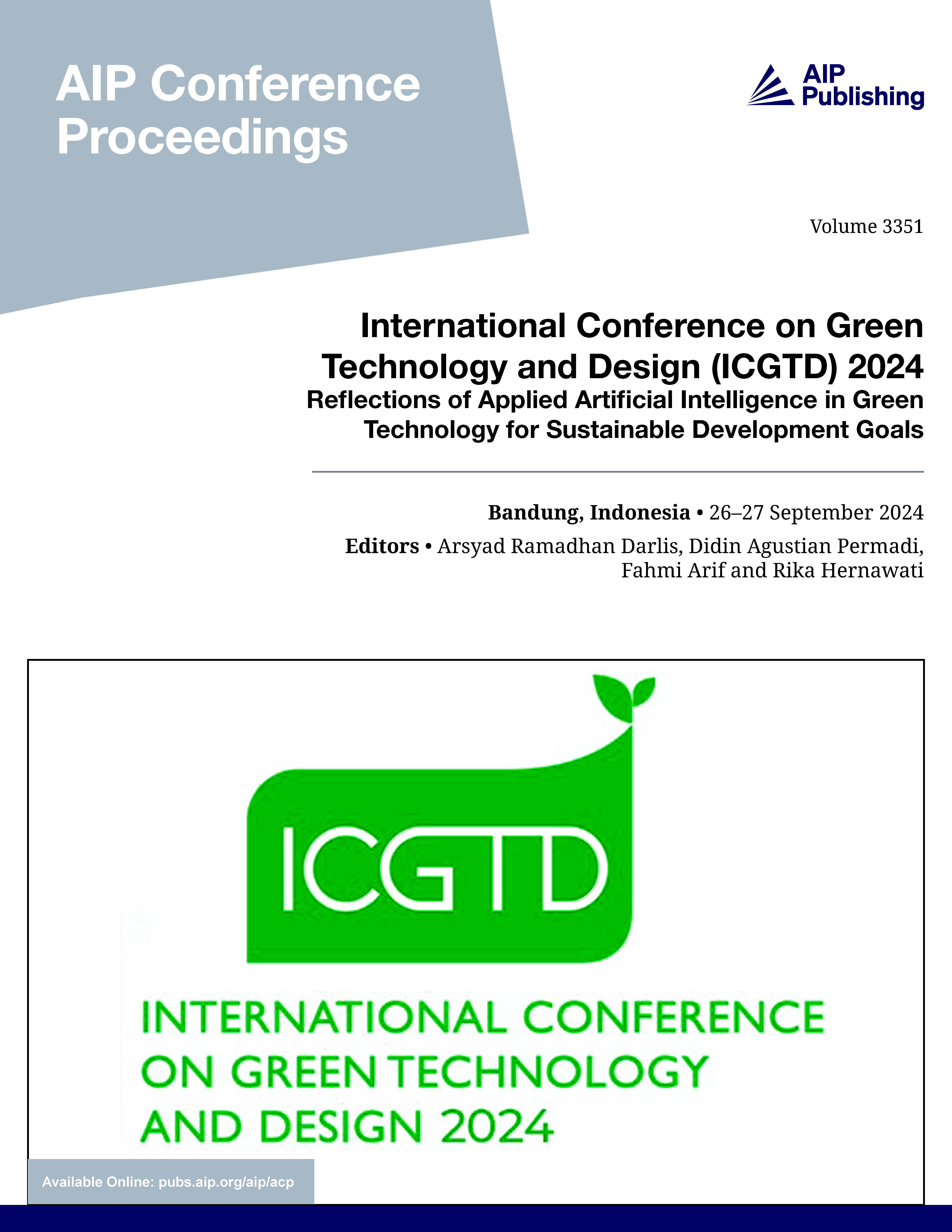 Volume 3351 is the proceedings of International Conference on Green Technology and Design (ICGTD) 2024 (26–27 September 2024, Bandung, Indonesia)